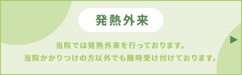 発熱外来を実施しております。ご来院の前に必ずお電話でお問い合わせをお願い致します。